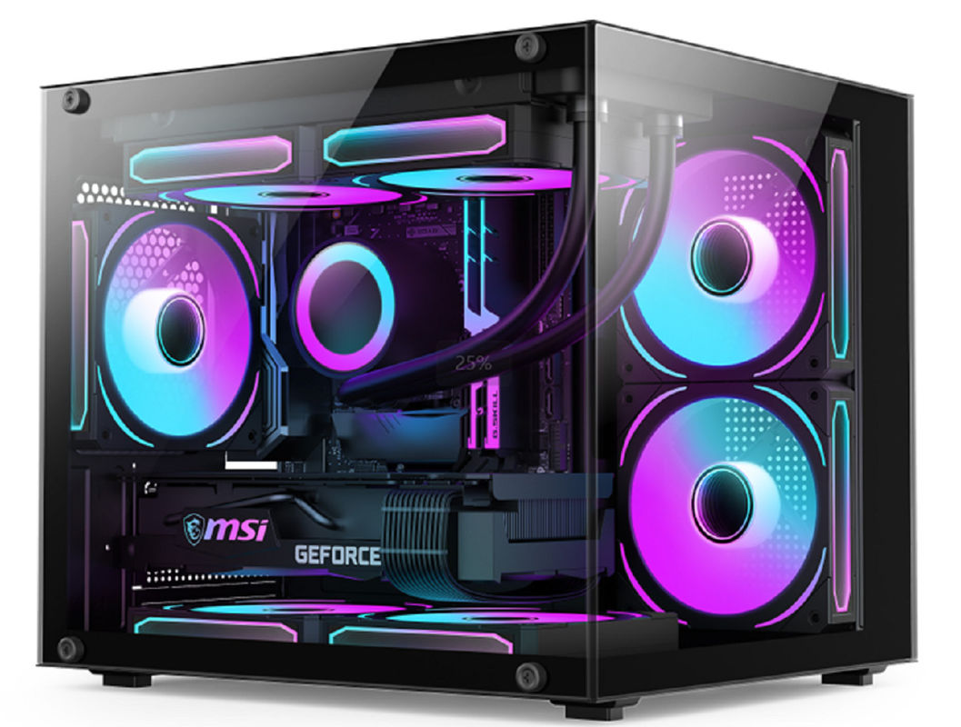 11. soporte de ventiladores hacia arriba:12CM*2 ((con a prueba de polvo); soporte de ventiladores traseros:12CM*1; soporte de ventiladores de la placa base:12CM*2
