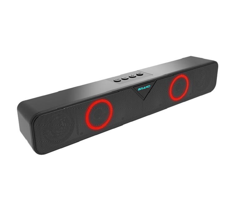 Compacta barra de sonido brillante con dos controladores de rango completo de 2 pulgadas (5W × 2 RMS) y dos salidas de graves para una mejor respuesta de gama baja.35 Hz~16 kHz con separación de canales > 88 dB para imágenes estéreo clarasEsta barra de sonido brillante con una batería recargable de 1200 mAh incorporada (entrada DC 5V) permite la reproducción inalámbrica durante 3~5 horas.Tarjeta TFEste panel de malla de hierro frontal de barra de sonido brillante y el logotipo emiten luz ambiente RGB personalizable durante el funcionamiento.Tamaño elegante (381×83×78mm) encaja perfectamente debajo de los monitores o en los escritorios, películas, música, y como un regalo elegante.