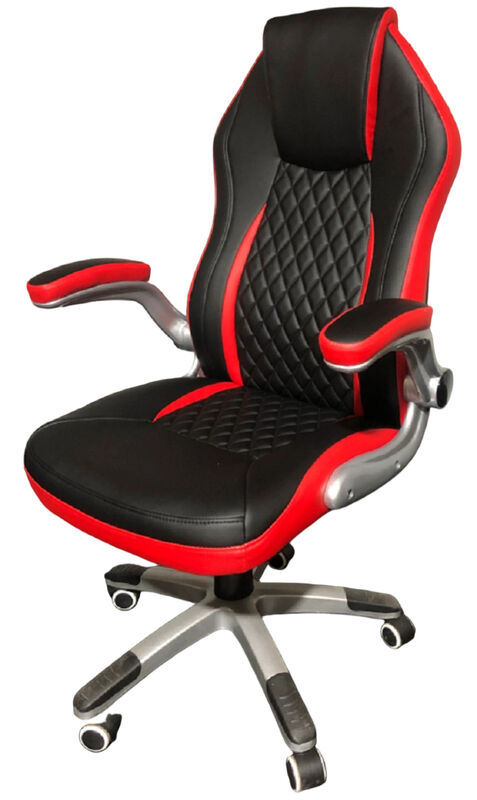 Silla ergonómica de juegos con tapicería PU roja y negra, con reposabrazos acolchados plegables para ahorrar espacio.Esta silla de juego construida en una base de acero recubierta de polvo de 320 mm con ruedas de PU de rodadura suave y un ascensor de gas de clase 2 de 100 mm para el ajuste de alturaEsta silla de juego incluye un mecanismo de inclinación múltiple para la comodidad de reclinarse.Esta silla de juego es ideal para largas sesiones de juego o de trabajo.